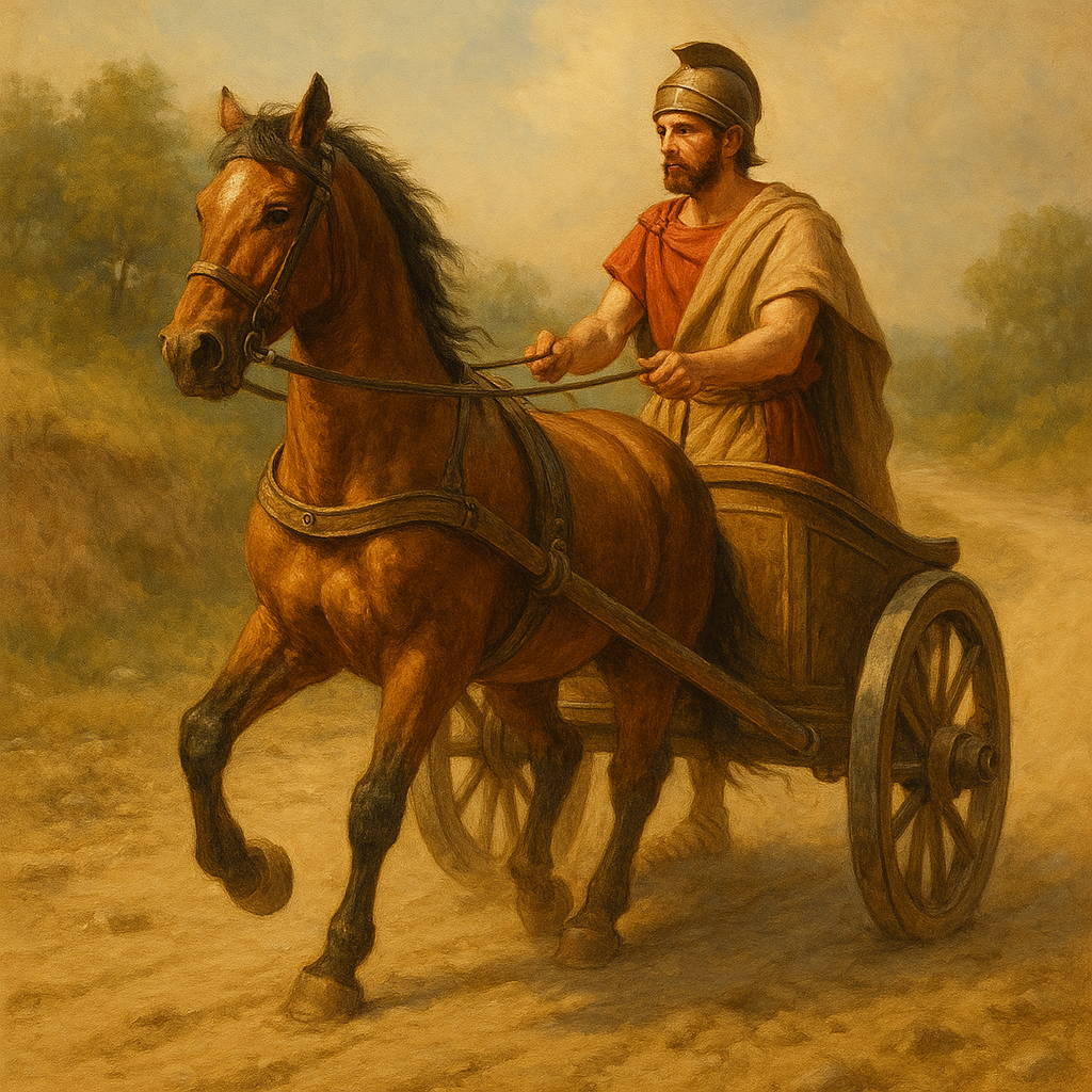 In het oude Rome werden houten wielen van karren vaak met ijzer beslagen — een ijzeren band werd strak om het wiel geslagen om het te verstevigen tegen slijtage op de ruwe zand- en steenwegen.