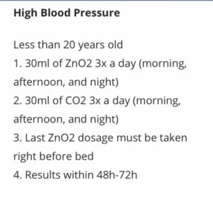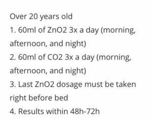 Dus neem 3x per dag 60 Ml ZnO en 60 ml Co2 gans water elke dag.